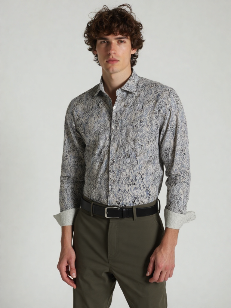 One of the standout features of this shirt is its digital all-over print. Created using advanced printing technology, the design showcases sharp detailing and vibrant precision. Unlike traditional printing methods, digital printing ensures clarity, durability, and long-lasting color retention. The intricate pattern enhances the visual appeal of the shirt while maintaining a refined and polished look.