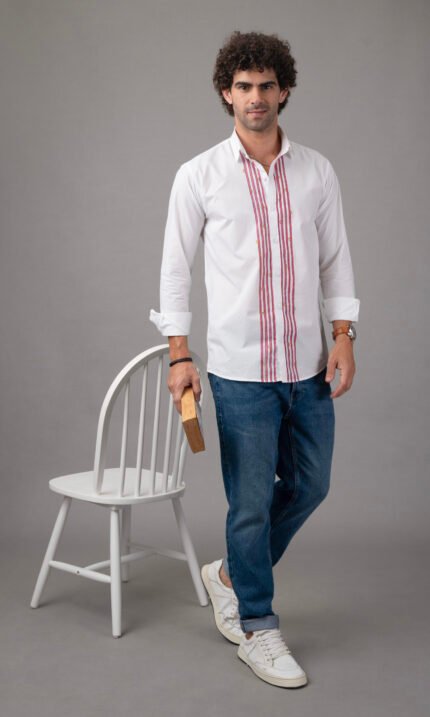 | Product | Men’s Solid Shirt – White with Black Collar |