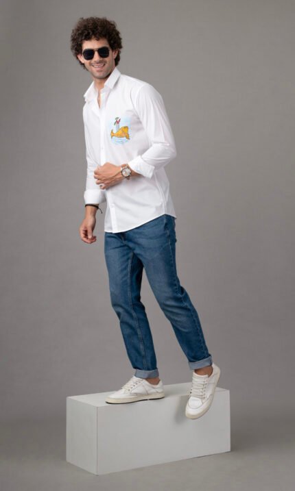 The classic white shirt gets a confident upgrade with the Dor Solid Shirt featuring a Black Collar. Designed for those who appreciate clean structure with a statement detail, this shirt offers the versatility of white with a contrasting collar that subtly shifts the style toward high fashion Dor Trends.